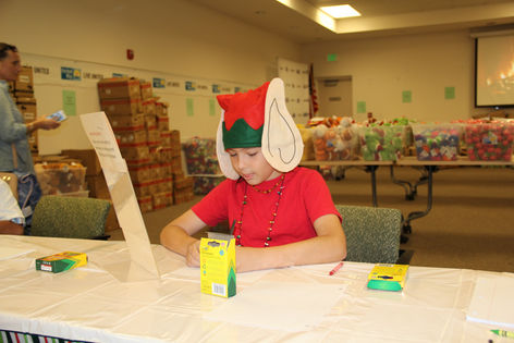 The stockings are filled by other children and their families, providing them with the opportunity to experience the value of helping less fortunate children within our community. Last year we had 100 young children (elves) stuffing the stockings on "stuffing day." This wonderful event creates a lasting joyous memory for all of our elves. We call this "Kids Helping Kids."